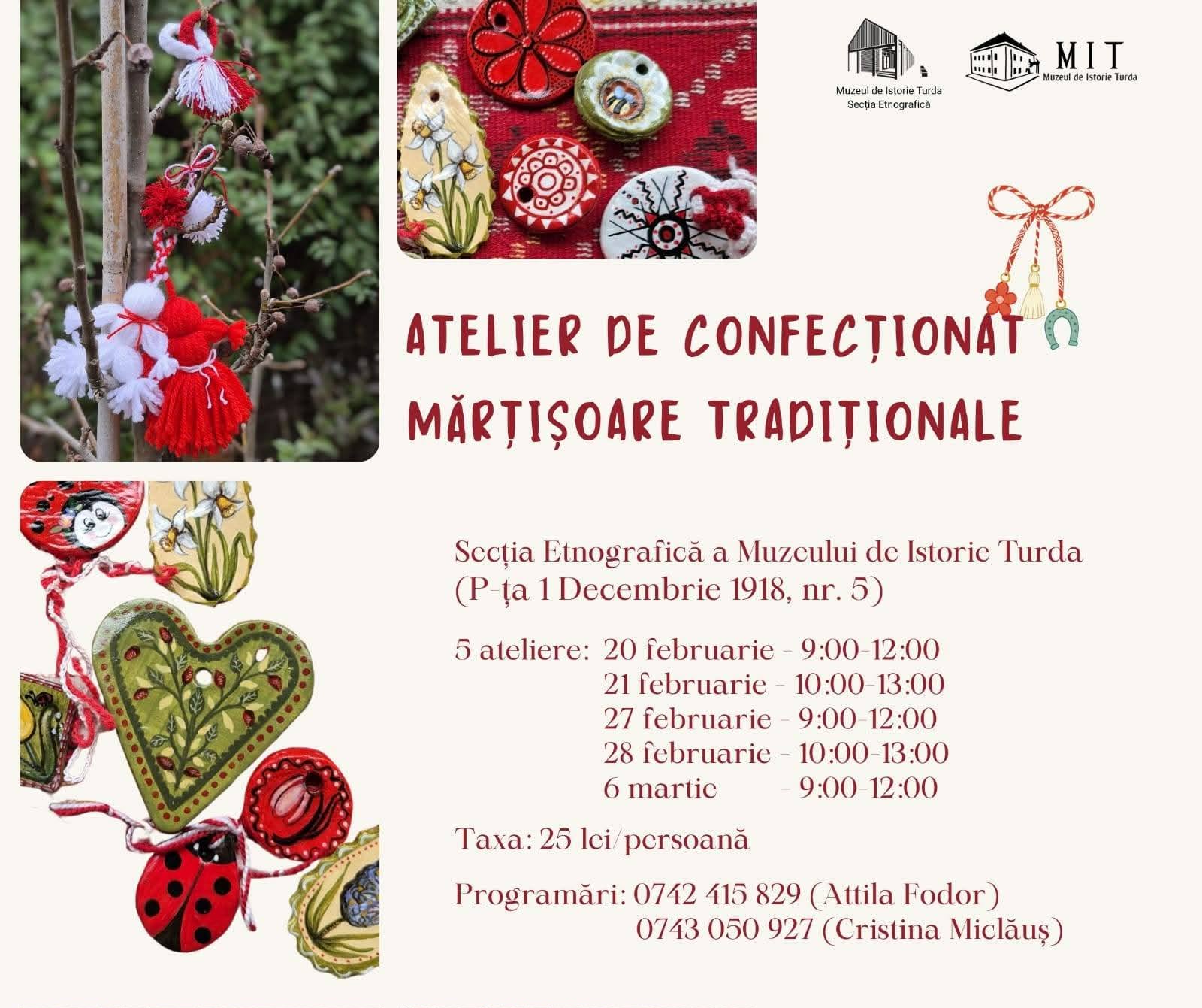 Secția Etnografică a Muzeului de Istorie Turda invită copiii și adulții să descopere farmecul tradițiilor românești în cadrul atelierelor de confecționat mărțișoare tradiționale, organizate în perioada 20 februarie – 6 martie, în Piața 1 Decembrie 1918, nr. 5.