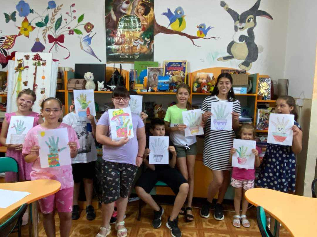 Așa că, îndrumat de bibliotecarele Gabriela Oseacă și Dana Pașca, fiecare copilaș a învățat astăzi că se poate folosi și de palmă, atunci când nu știe cum să reproducă în desen forma unui cactus, a învățat noțiuni de limbaj plastic, tehnici de lucru, joacă și experiență.