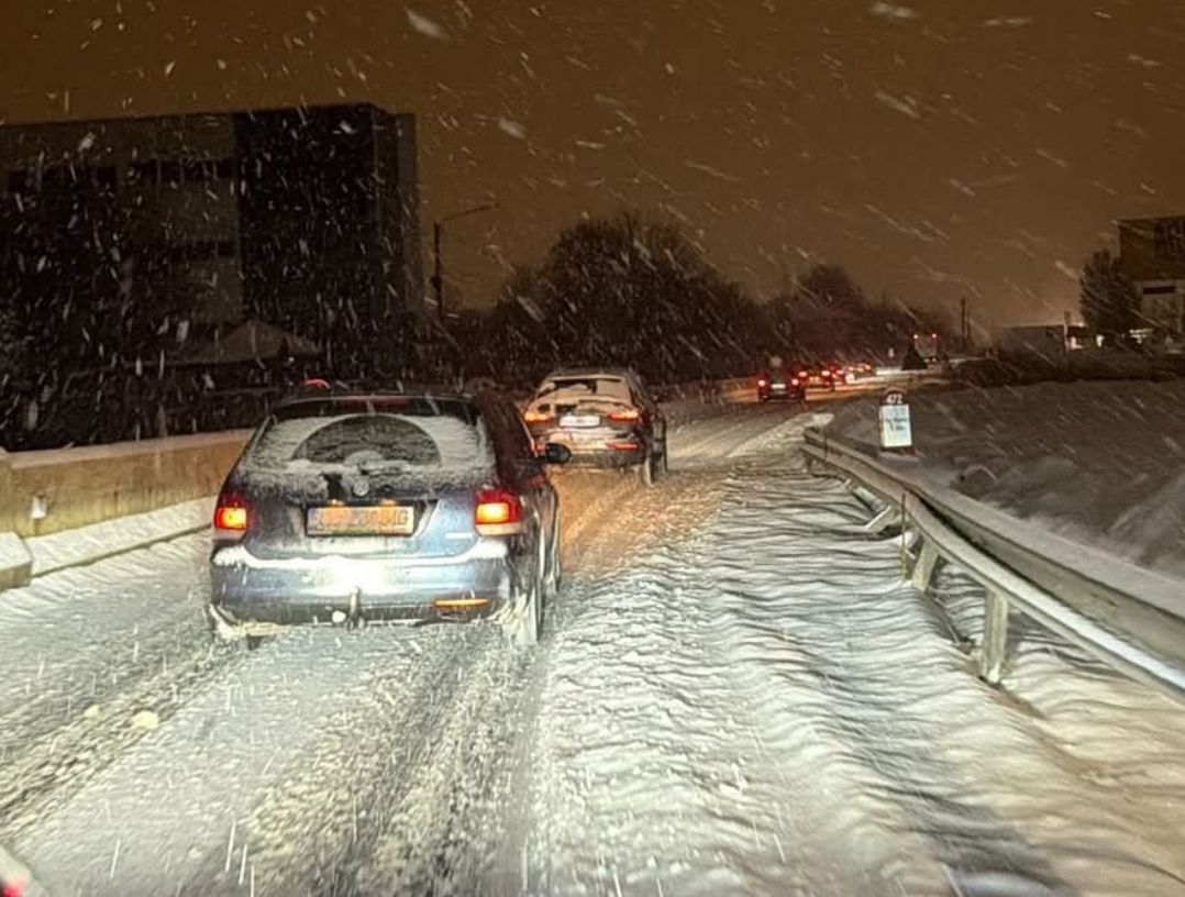 Circulația rutieră pe drumul Turda–Cluj se desfășoară în condiții de iarnă severă, după ce carosabilul a fost complet acoperit de zăpadă și polei. Ninsorile abundente din ultimele ore au transformat șoseaua într-un traseu periculos, iar șoferii sunt nevoiți să circule cu viteză redusă, în coloană.