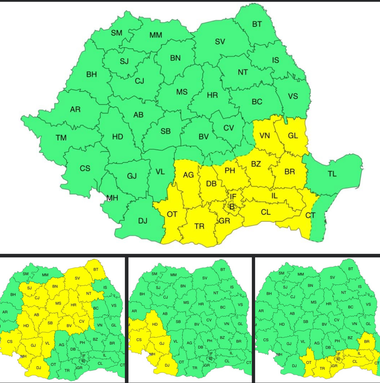 Notă: perioade cu instabilitate atmosferică vor fi pe alocuri și în restul țării.