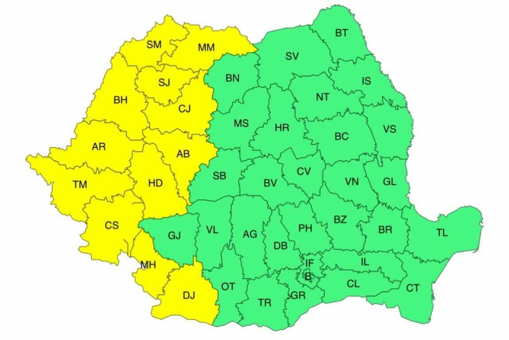 Notă: până spre sfârșitul săptămânii va mai fi caniculă și disconfort termic ridicat, mai ales în regiunile vestice și sud-vestice.