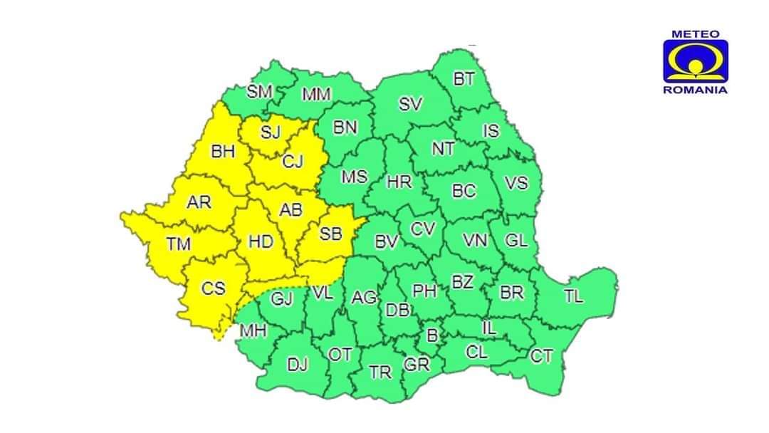 În intervalul menționat, în Banat, Crișana, vestul și sud-vestul Transilvaniei, precum și în Carpații Occidentali și vestul Carpaților Meridionali vor fi perioade cu instabilitate atmosferică accentuată, ce se va manifesta prin frecvente descărcări electrice, averse torențiale, intensificări ale vântului și grindină. În intervale scurte de timp cantitățile de apă vor depăși 20…30 l/mp.