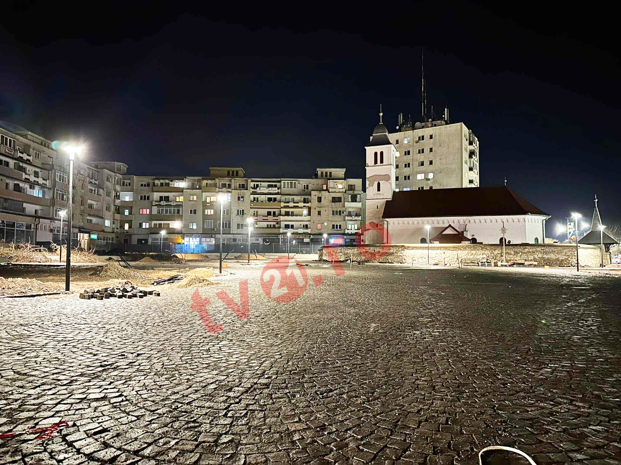 Au fost instalați stâlpii de iluminat din Parcul Central din Câmpia Turzii