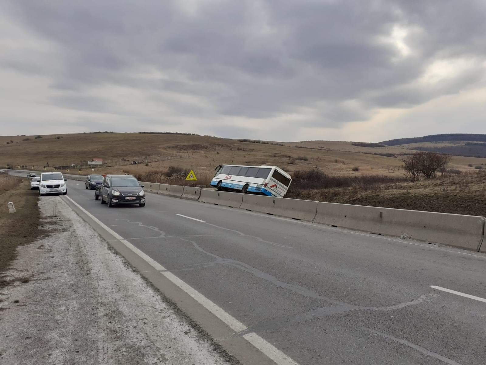 Miercuri în jurul orei 15.30, un autocar care circula în direcția Cluj Napoca, dinspre Turda, la ieșirea din localitatea Mătinești șoferul a pierdut controlul volanului și a ajuns pe marginea părții carosabile, răsturnat.