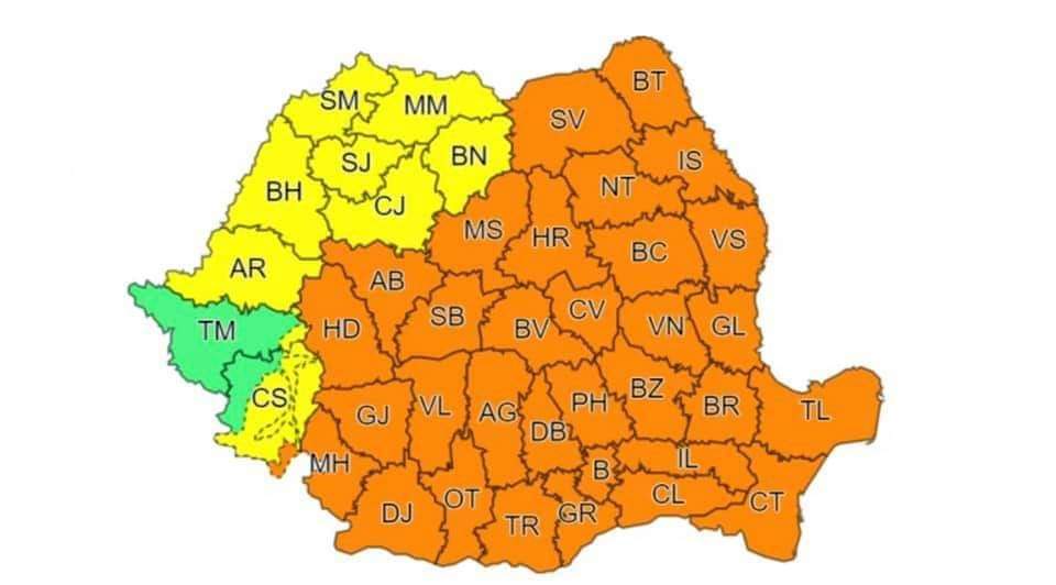 Notă: Local în sudul și estul țării disconfortul termic se va menține ridicat, iar indicele temperatură-umezeală (ITU) va depăși pragul critic de 80 de unități.