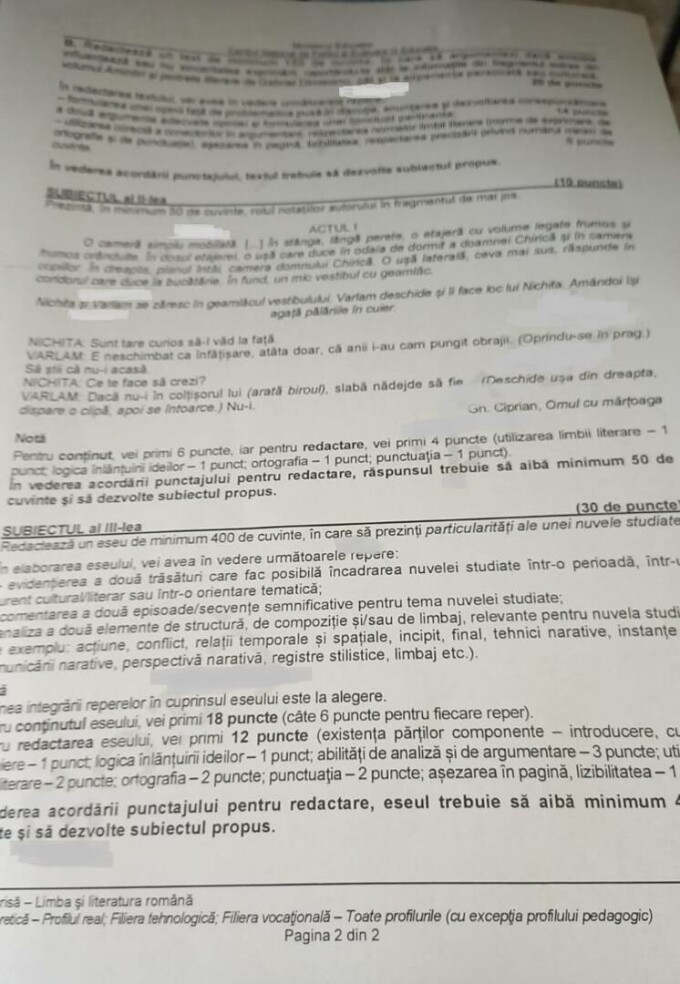 BAC 2024. În spațiul public au apărut primele imagini cu subiectele de la Limba și literatura română