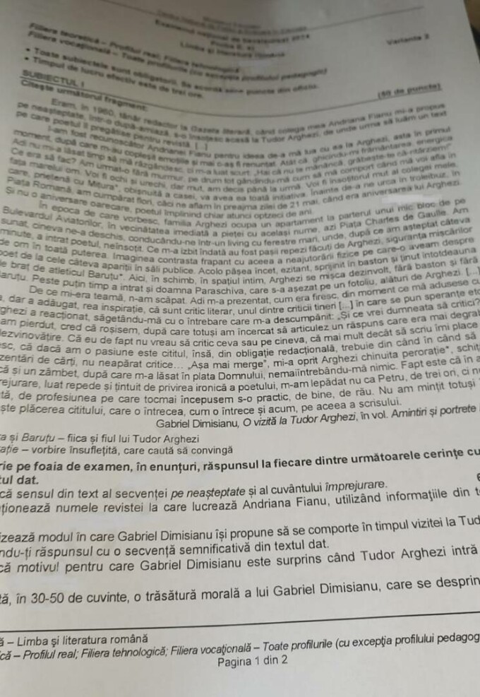 BAC 2024. În spațiul public au apărut primele imagini cu subiectele de la Limba și literatura română
