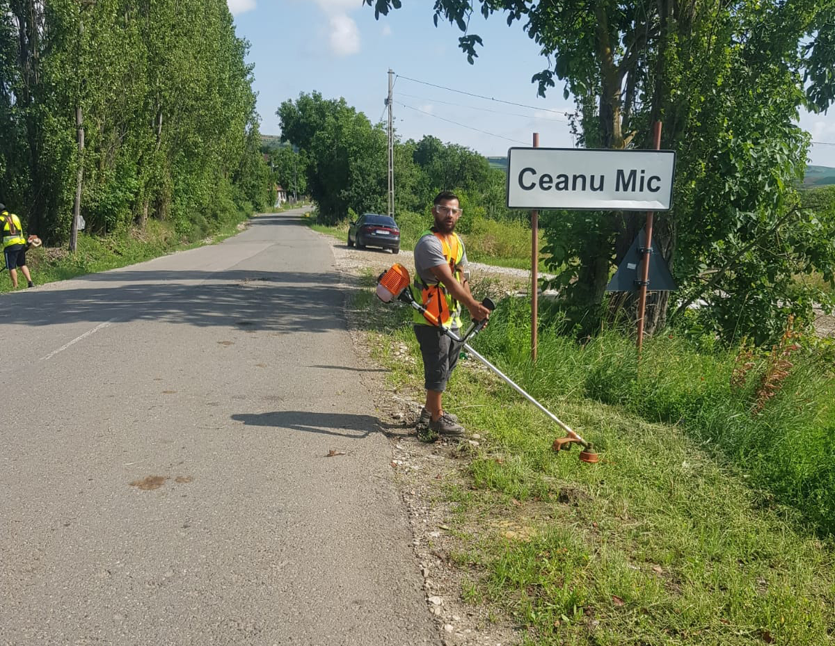 Beneficiarii de ajutor social, polițiștii locali și șoferii microbuzelor Primăriei Comunei Tureni își unesc eforturile pentru ecologizarea Drumului Județean 103G, în satul Ceanu Mic Comuna Tureni, 07.07.2023