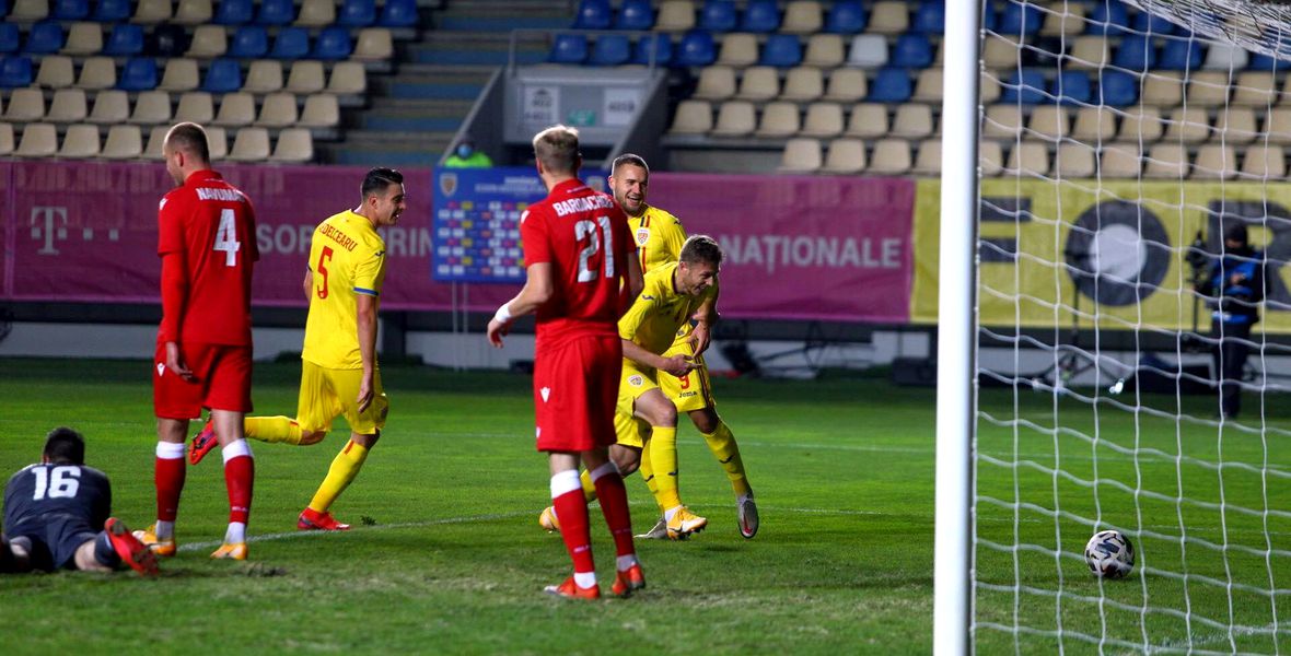 La debutul în națională, fundașul tricolorilor a marcat primul gol împotriva Belarusului.