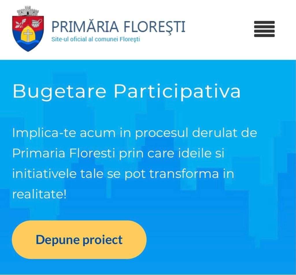 Prin Bugetarea Participativă îmi doresc implicarea cetăţenilor comunei Floreşti ȋntr-un proces democratic de deliberare şi decizie pentru proiecte și idei noi care au ca scop principal CREȘTEREA CALITĂȚII VIEȚII noastre.