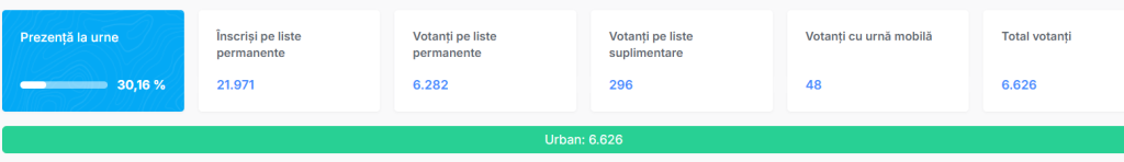 Până la ora 16.00 6626 de ghirișeni și-au exprimat intenția de vot din 21971 de persoane înscrise pe listele permanente adică 30,16%