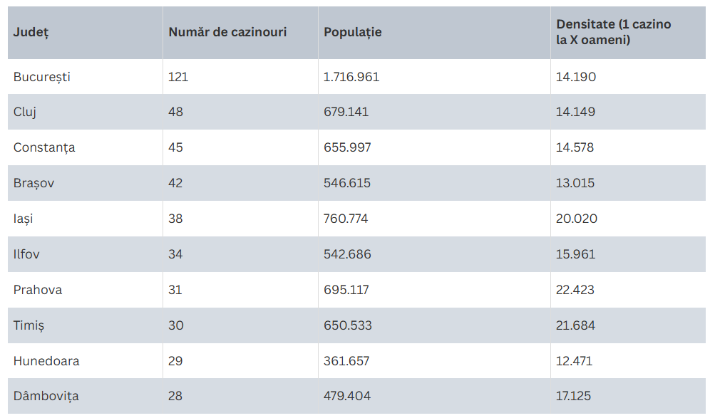 Județele din România cu cele mai multe cazinouri