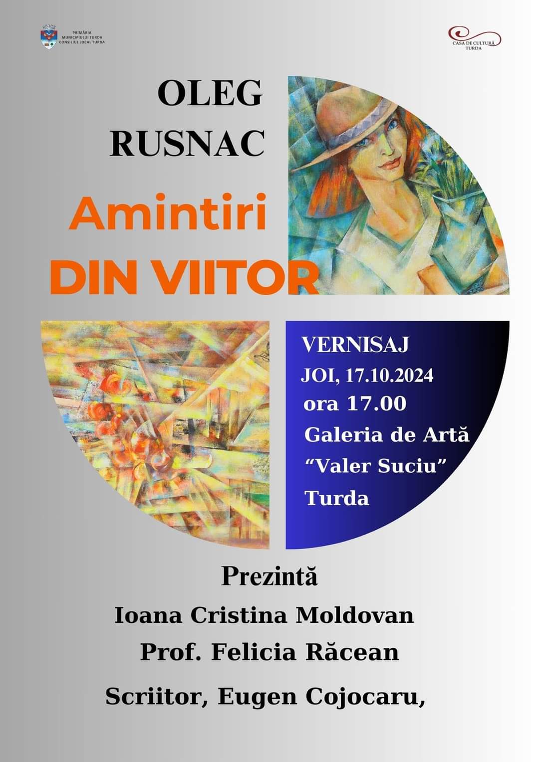 ” Joi, 17.10, de la ora 17.00, vom lua parte la un eveniment captivant, “Amintiri din viitor”. Expoziţia conturată de domnul artist plastic, Oleg Rusnac, ne aduce în atenţie un tandem reuşit de portrete şi lucrări plastice.
