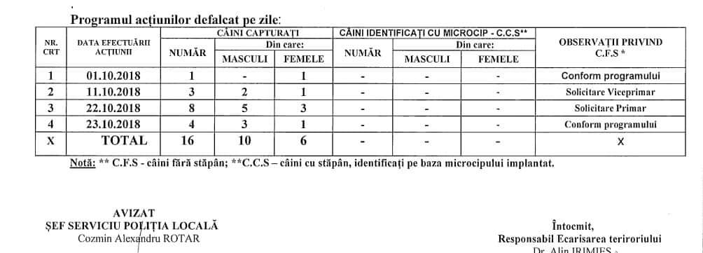 Acțiunile interprinse au vizat întreaga zonă a municipiului și au constat în identificarea și strângerea câinilor fără stăpân, care circulă liber, fără însoțitor pe domeniul public al municipiului, capturându-se un număr de 16 câini, niciunul nu a fost identificat ca având microcip.