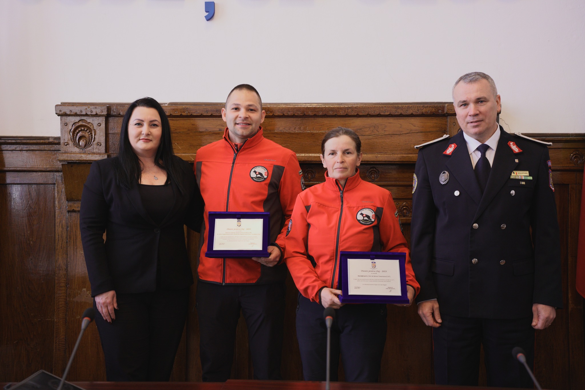 După aprobarea proceselor verbale, domnul Moldovan Ion, general de brigadă ISU Cluj, a prezentat membrilor Comitetului Județean pentru Situații de Urgență cei doi salvatori ai Clujului, pe domnul plutonier adjutant șef Cornel-Rareș Urs și pe doamna Oana Ciora, președintele Asociației Câini de Salvare Transilvania. Aceștia au intervenit în mod voluntar, împreună cu doi câini de salvare (Max și Dino) în Turcia, urmare a cutremurelor care au avut loc la începutul acestui an, pentru salvarea de vieți omenești.