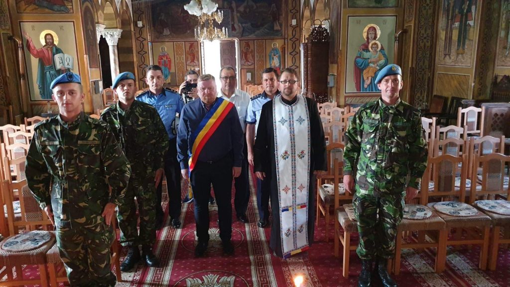 Ora 11:20 – 11:25 Scoaterea din biserică şi primirea drapelului României, care urmează a fi înălţat;