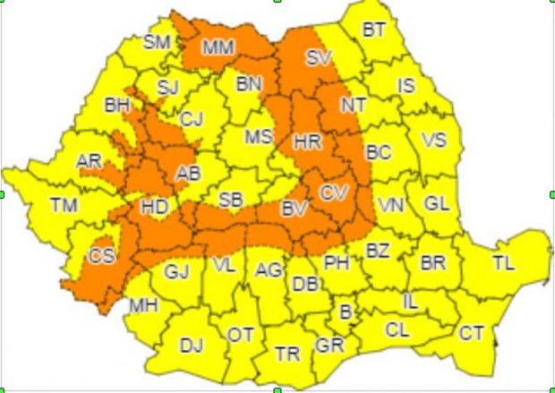 Totodată, pentru nordul, nord-vestul și centrul țării este în vigoare, tot de la ora 10:00, un Cod galben de vânt intens, disconfort termic și precipitații mixte.