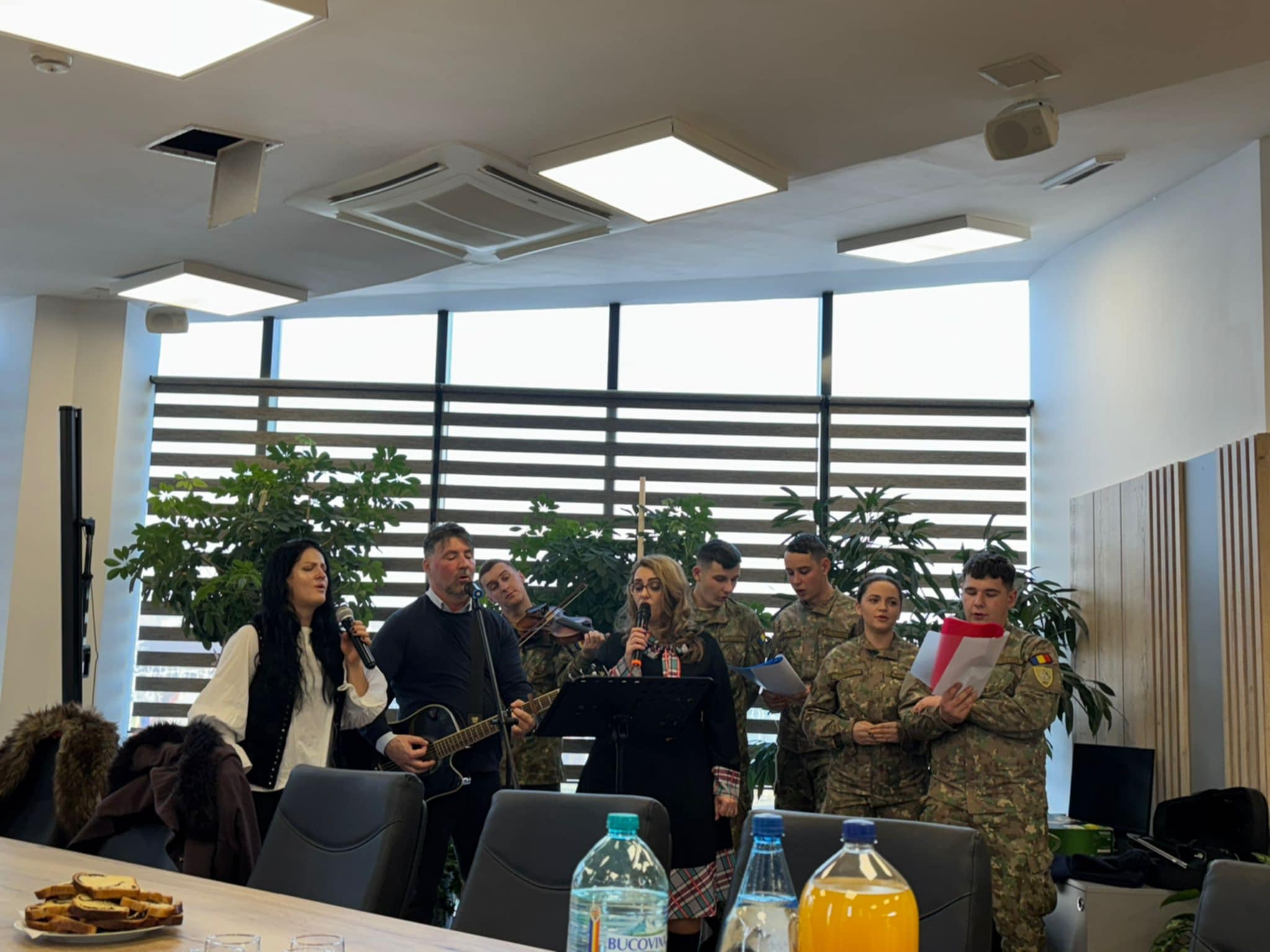 Astăzi, atmosfera sărbătorilor de iarnă a cuprins Primăria Mihai Viteazu, unde Formația „Mihai Vodă” a Unității Militare UM01515 a venit cu un recital de colinde plin de emoție și căldură.