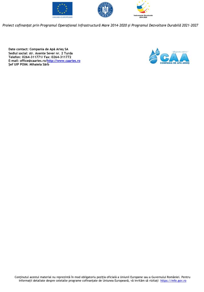 apă și apă uzată din regiunea Turda-Câmpia Turzii, în perioada 2014-2020 -etapa a II-a”, cod SMIS 2021-321839, cofinanțat