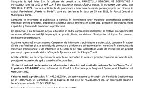 Compania de Apă Arieș S.A. în calitate de beneficiar al PROIECTULUI REGIONAL DE DEZVOLTARE A INFRASTRUCTURII DE APĂ ȘI APĂ UZATĂ DIN REGIUNEA TURDA-CÂMPIA TURZII, ÎN PERIOADA 2014-2020, cod SMIS 2014+ 118679, co-finanțat din Fondul de Coeziune prin Programul Operațional Infrastructură Mare 2014-2020, a semnat, în data de 20.10.2021, un nou contract de servicii: