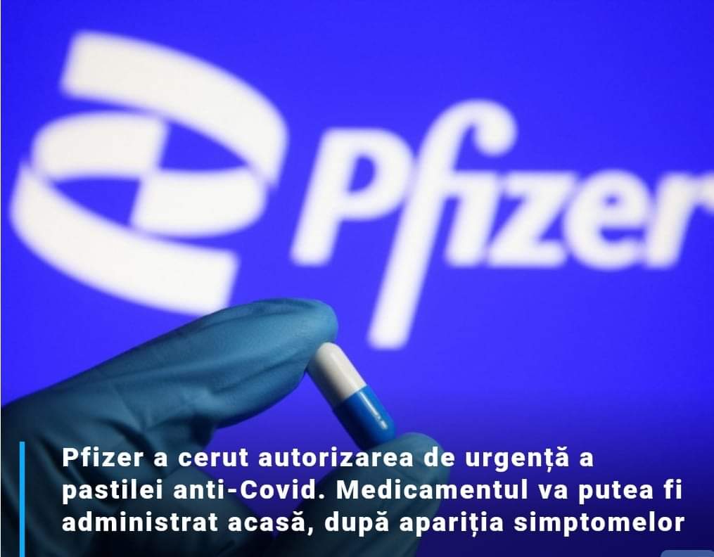 La începutul lunii noiembrie, Pfizer, care comercializează deja împreună cu compania germană BioNTech unul dintre cele mai eficiente vaccinuri împotriva COVID-19, a dezvăluit că antiviralul său oral va fi comercializat sub numele de Paxlovid, scrie Agerpres. Pastila a demonstrat o eficienţă de 89% în prevenirea riscului de spitalizare sau de deces dacă este administrată în primele trei zile de la apariţia simptomelor, conform rezultatelor intermediare ale studiilor clinice.