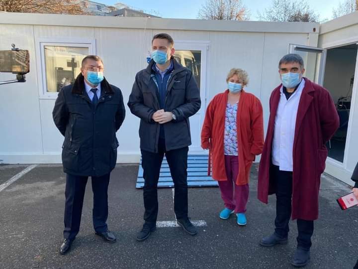 Astăzi, în prezența domnului Gheorghe Alecsei, președintele Administrației Naționale pentru Rezerve de Stat și Probleme Speciale (ANRSPS), precum și a domnului director general Călin Almășan, am asistat la instalarea a încă 2 containere la Spitalul Clinic de Urgență pentru Copii Cluj-Napoca, care vor ajuta la triajul epidemiologic, vor constitui zone tampon sau vor ajuta la consultarea pacienților COVID-19. De asemenea, 1 container a fost dus la Spitalul Clinic CF – Cluj-Napoca și 1 container la Spitalul Orășenesc Huedin.