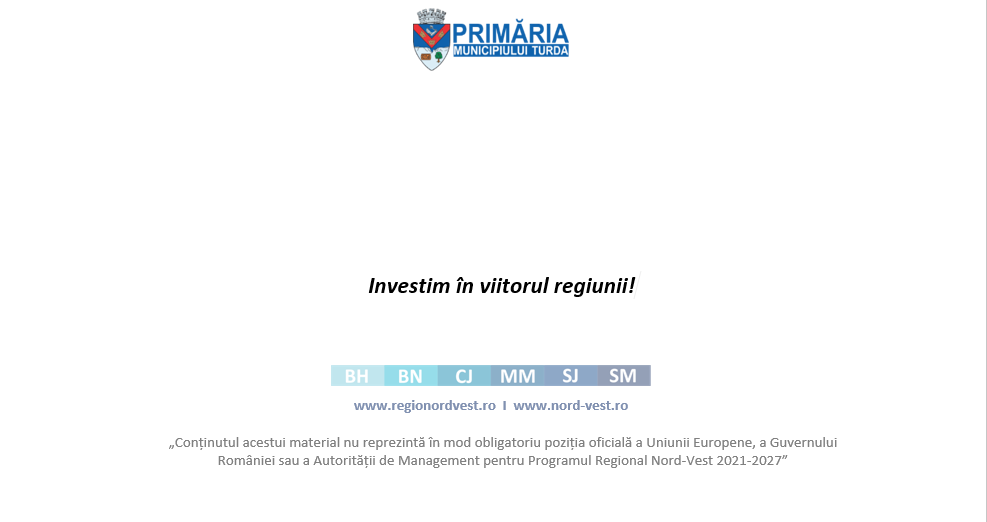 Contractul de finanțare a fost semnat la data de 25.06.2024 între Unitatea Administrativ-Teritorială Municipiul Turda în calitate de Beneficiar și Agenția de Dezvoltare Regională Nord-Vest, în calitate de Autoritate de Management pentru Programul Regional Nord-Vest 2021 – 2027.
