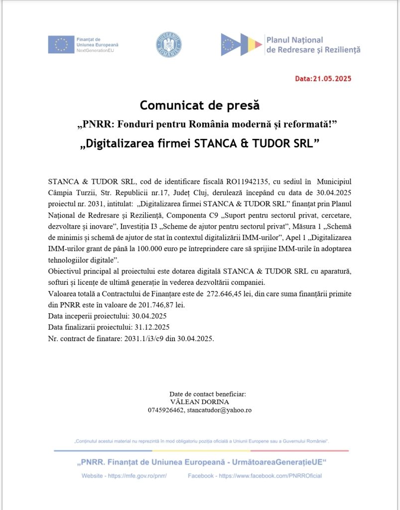 Actualitate Comunicat începere proiect ziarul21.ro 21 mai 2025, 12:22 Share Tweet Share Share Email Comments Related Items:Comunicat incepere proiect, Featured, Stanca si tudor Share Tweet Share Share Email Click to comment Leave a Reply Anulează răspunsulComentariile trebuie să respecte regulile de utilizare.Adresa ta de email nu va fi publicată. Câmpurile necesare sunt marcate cu *Comentariu * Nume * Email * Δ Acest site folosește Akismet pentru a reduce spamul. Află cum sunt procesate datele comentariilor tale.