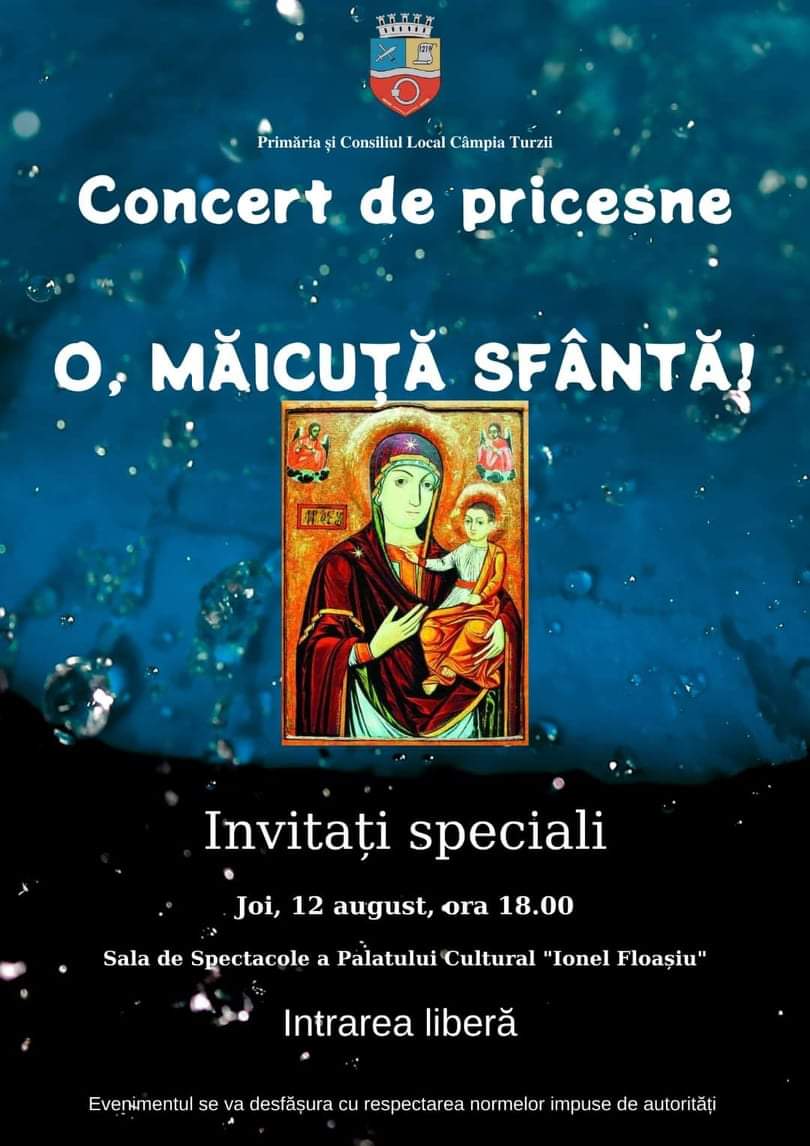 Pentru a onora cum se cuvine sărbătoarea Adormirii Maicii Domnului, care este patronul spiritual al Municipiului Câmpia Turzii, Primăria și Consiliul Local Câmpia Turzii organizează un eveniment cultural de excepție.