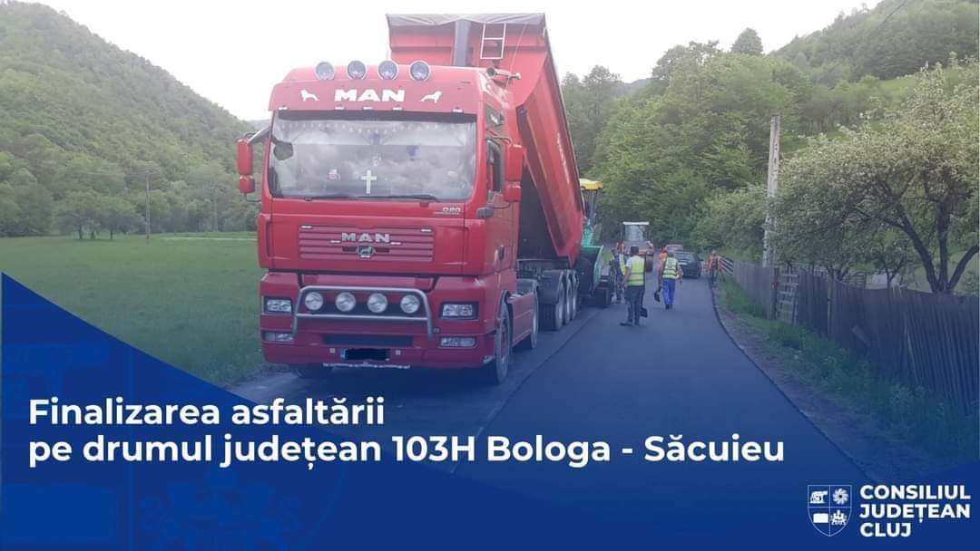 Consiliul Județean Cluj a finalizat lucrările de așternere a covorului asfaltic executate pe drumul județean 103H Bologa – Săcuieu.