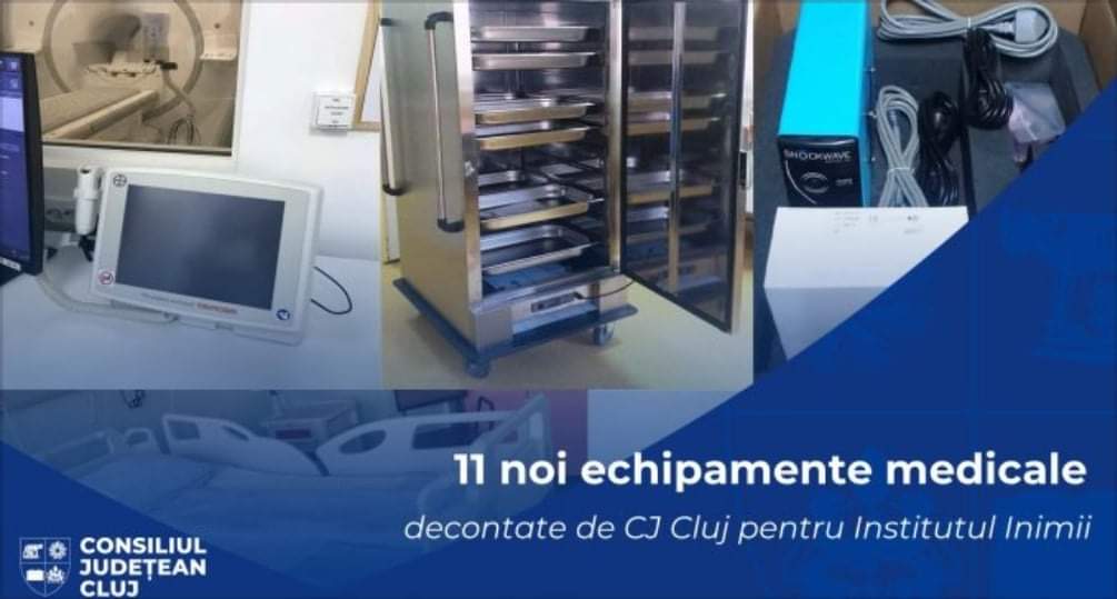 Consiliul Județean Cluj a decontat achiziția a 11 aparaturi și echipamente medicale pentru Institutul Inimii „Niculae Stăncioiu” din Cluj-Napoca, unitate sanitară aflată în subordinea Ministerului Sănătății.