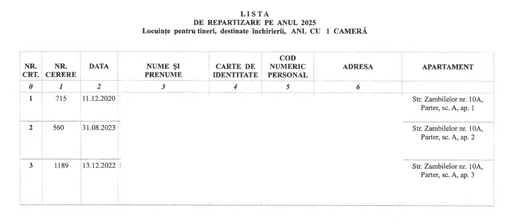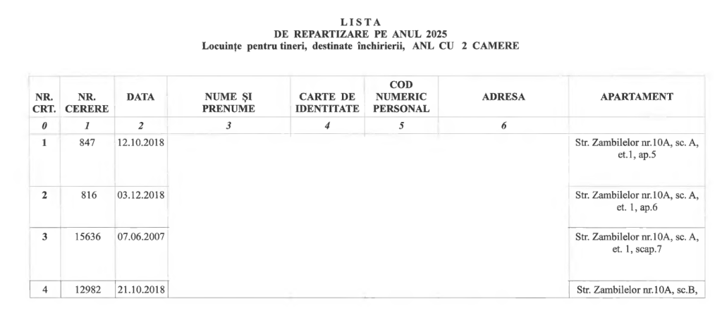 Hotărârea a fost adoptată în cadrul unei ședințe publice extraordinare și vizează atât locuințele cu o cameră, cât și cele cu două camere, listele de repartizare fiind cuprinse în anexele care fac parte integrantă din documentul oficial.