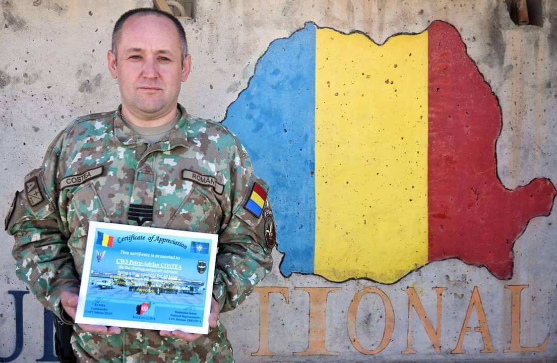„În cele 6 luni petrecute în teatrul de operații din Afganistan, maistrul militar clasa a II a Costea Petru Adrian, șef formație instalații electrice și oxigen atelier IEABO/SMA (instalații electrice de bord/secția mentenanța aviatie) de la U.M. 01969 Câmpia Turzii a înțeles foarte bine scopul misiunii Echipei Consilieri Mentenanță Forțe Aeriene și a reușit să impresioneze prin aptitudinile lui de consilier, diplomație, altruism și implicare atât partenerul american cât și pe cel afgan.