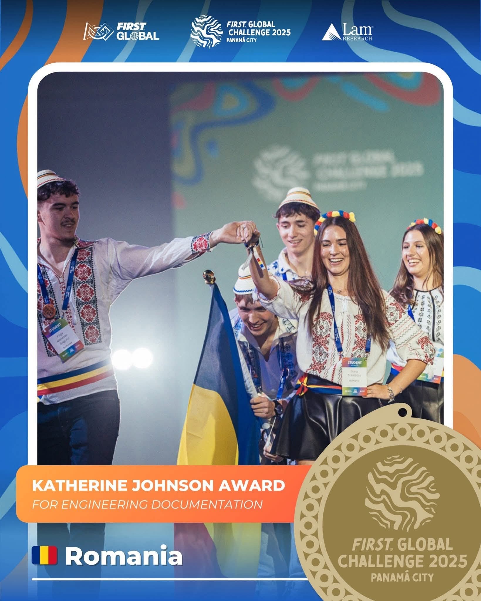 Echipa CyberPunk Robotics – elevii geniali ai Colegiului Național „Mihai Viteazul” din Turda: 𝐓𝐫𝐚̂𝐦𝐛𝐢𝐭̦𝐚𝐬̦ 𝐃𝐢𝐚𝐧𝐚, 𝐁𝐫𝐨𝐬𝐜𝐨𝐢 𝐂𝐚̆𝐭𝐚̆𝐥𝐢𝐧-𝐀𝐝𝐫𝐢𝐚𝐧, 𝐌𝐞𝐧𝐞𝐬𝐞𝐬-𝐆𝐫𝐢𝐠𝐨𝐫𝐢𝐮 𝐅𝐢𝐥𝐢𝐩𝐞, 𝐕𝐚𝐬𝐢𝐥𝐞 𝐃𝐫𝐚𝐠𝐨𝐬̦-𝐒̦𝐭𝐞𝐟𝐚𝐧 𝐬̦𝐢 𝐀𝐥𝐚𝐣𝐦𝐢 𝐘𝐚𝐬𝐦𝐢𝐧 – a scris istorie la FIRST Global Challenge 2025 – Panama, obținând pentru România 𝐦𝐞𝐝𝐚𝐥𝐢𝐚 𝐝𝐞 𝐚𝐮𝐫 𝐥𝐚 „𝐊𝐚𝐭𝐡𝐞𝐫𝐢𝐧𝐞 𝐉𝐨𝐡𝐧𝐬𝐨𝐧 𝐀𝐰𝐚𝐫𝐝 𝐟𝐨𝐫 𝐄𝐧𝐠𝐢𝐧𝐞𝐞𝐫𝐢𝐧𝐠 𝐃𝐨𝐜𝐮𝐦𝐞𝐧𝐭𝐚𝐭𝐢𝐨𝐧”.