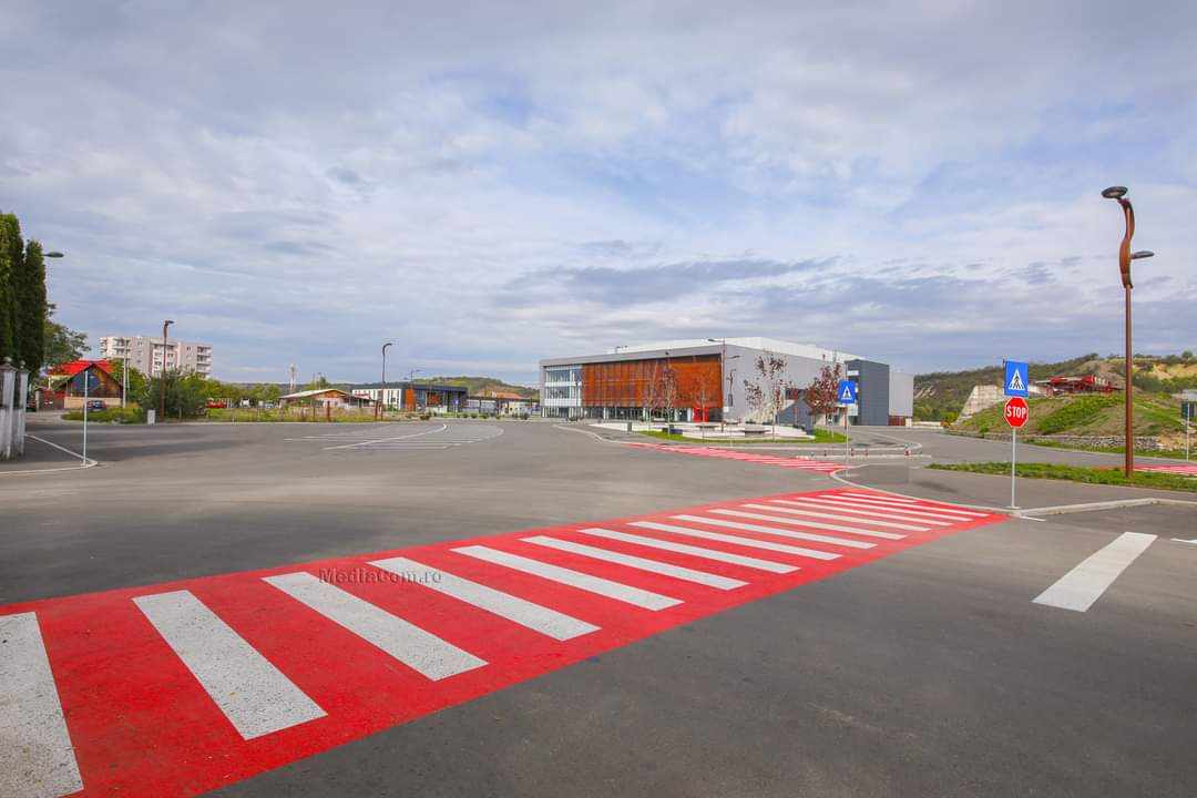 Pe platoul din jurul NOVA PG ARENA, au fost trasate marcaje rutiere, care includ un număr de aproximativ de 300 locuri de parcare, precum și trecerile de pietoni aferente.