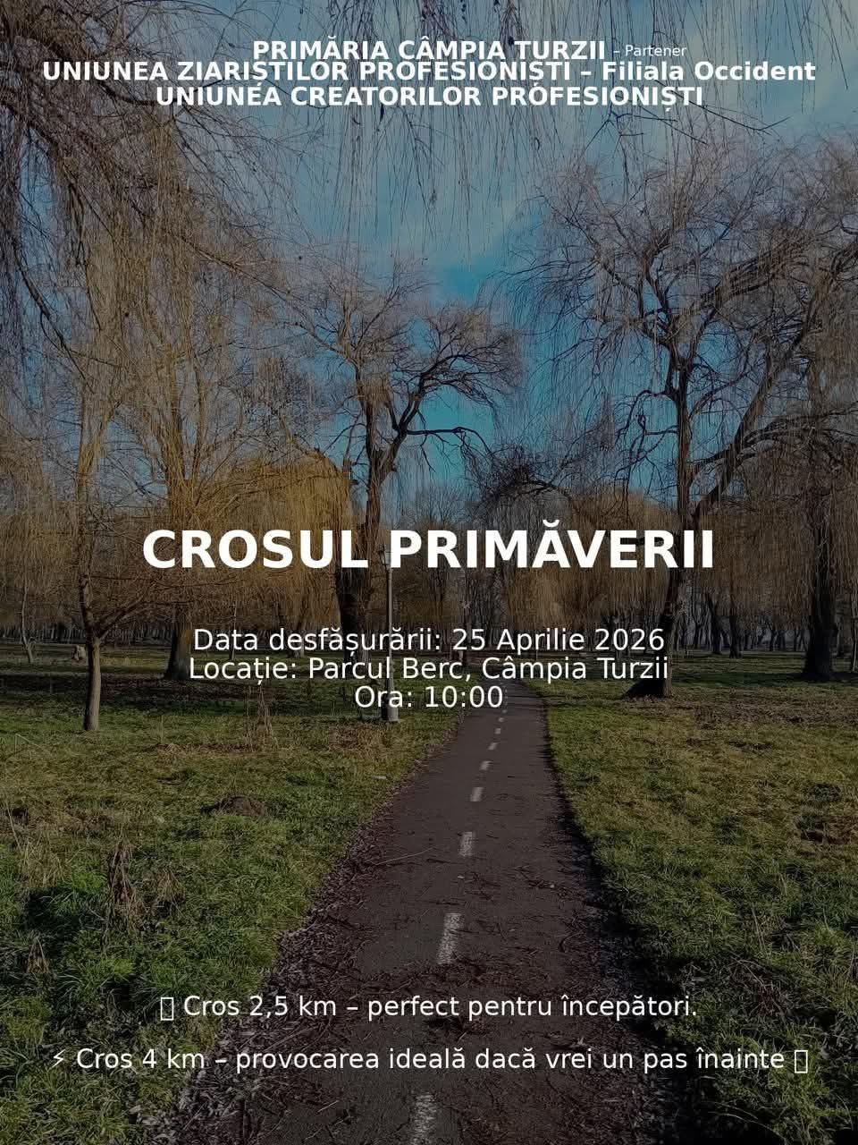 Locuitorii din Câmpia Turzii sunt invitați să participe la evenimentul sportiv „Crosul Primăverii”, care va avea loc în data de 25 aprilie 2026, în Parcul Berc, cu începere de la ora 10:00.