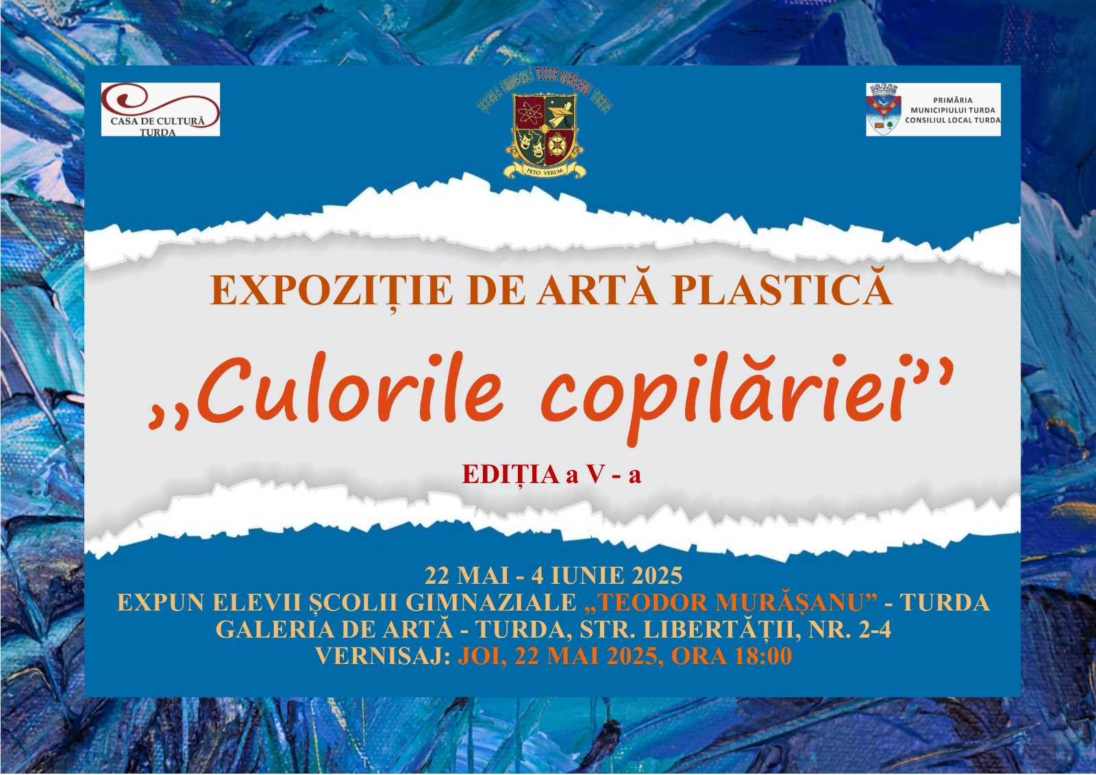 Această expoziție este rodul muncii și pasiunii elevilor din clasele V-VIII de la Școala Gimnazială „Teodor Murășanu” Turda, care au reușit, prin creațiile lor vizual-plastice, să aducă un omagiu copilăriei – acel tărâm magic al imaginației și sincerității.