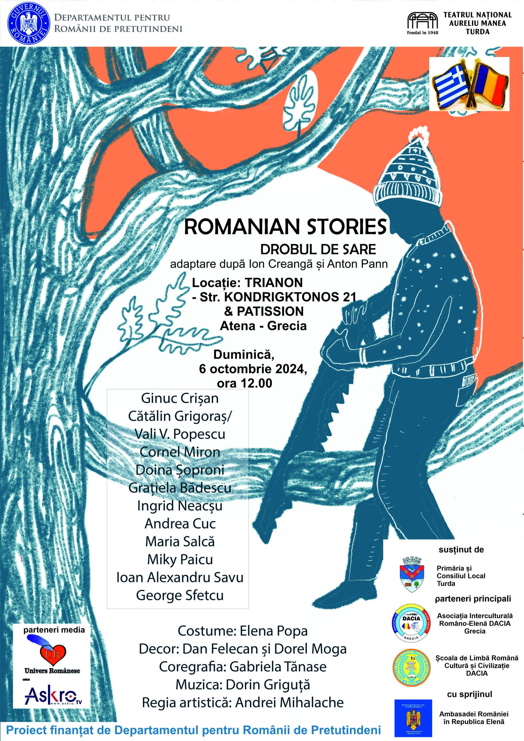 Teatrul Național Aureliu Manea Turda continuă promovarea valorilor cultural-artistice în afara granițelor țării, printr-un proiect adresat comunităților de români din Atena, Grecia.