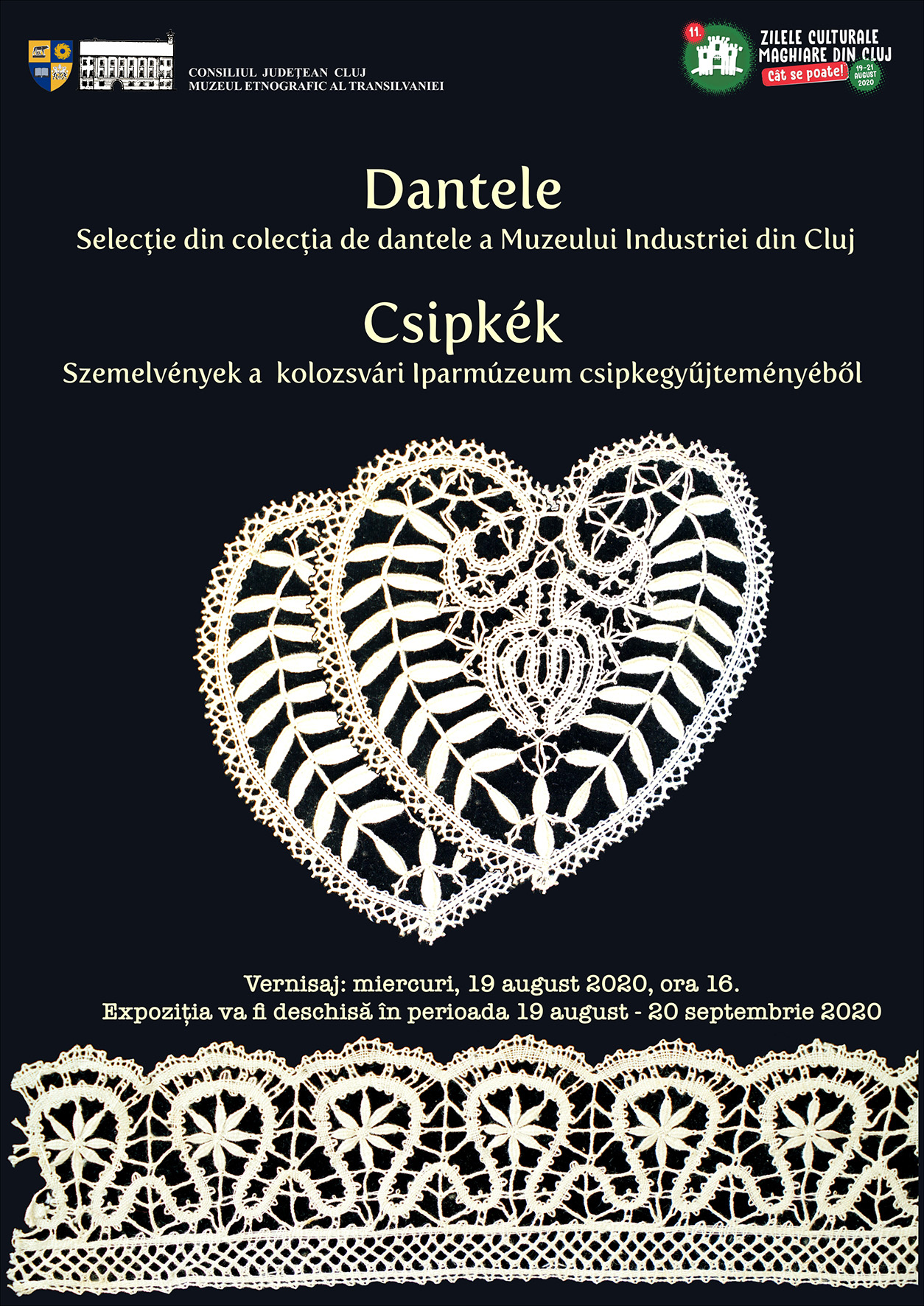 Muzeul Etnografic al Transilvaniei, instituție publică de cultură care funcționează sub autoritatea Consiliului Județean Cluj, vernisează miercuri, 19 august 2020, la ora 15, expoziția „Dantele. Selecție din colecția de dantele a Muzeului Industriei din Cluj„.