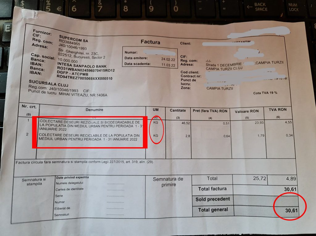 La momentul semnării contractelor cu Supercom, tarifele s-au transformat din lei/persoană/lună, în lei/kg! ceea ce a dus la creșterea sumei care apare pe factură.