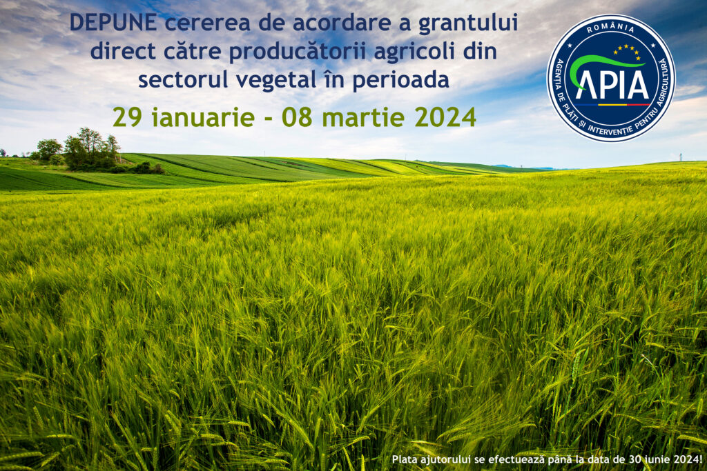 Depune cererea de acordare a grantului direct destinat producătorilor agricoli din sectorul vegetal în perioada 29 ianuarie – 08 martie 2024