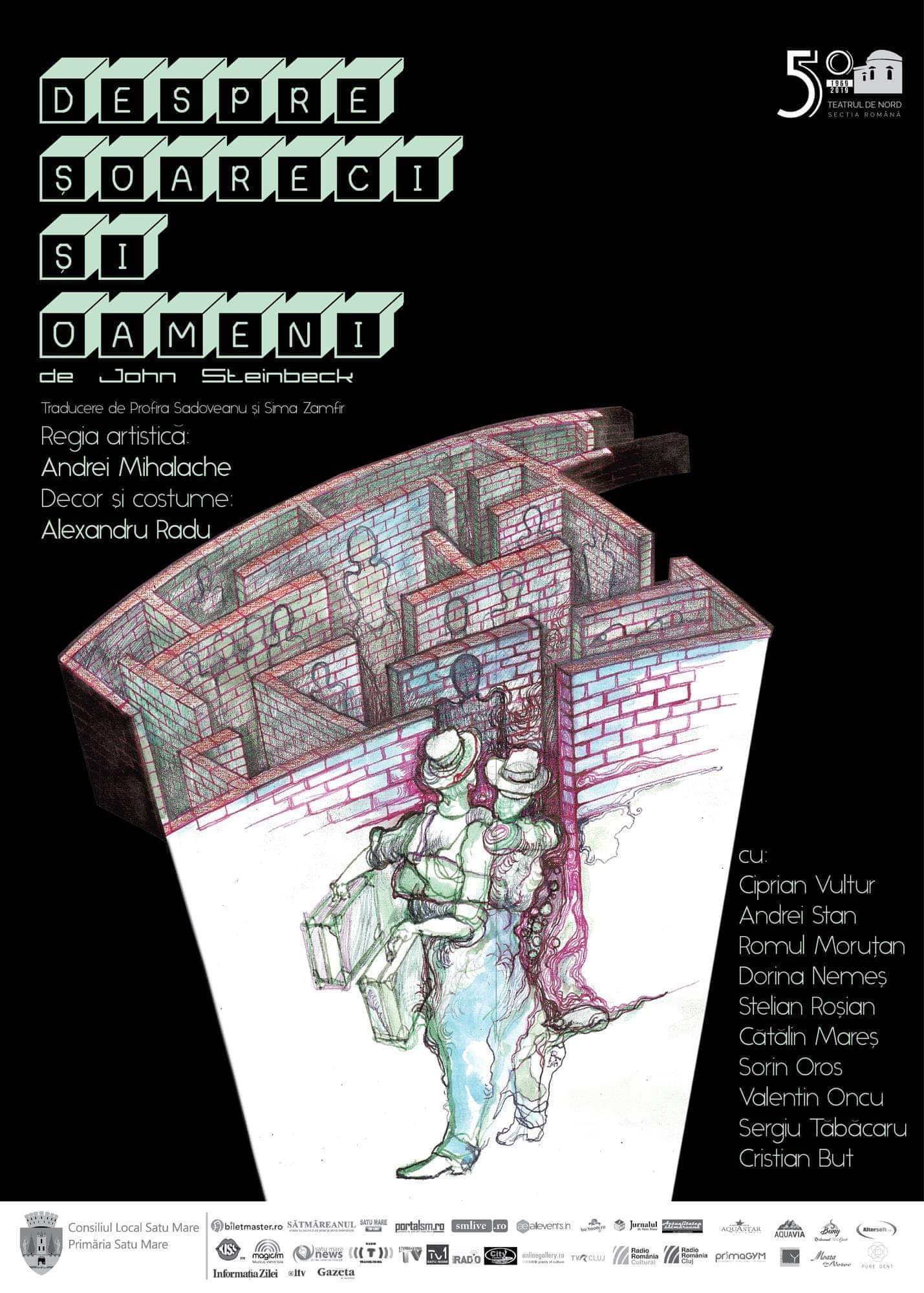 ”Despre șoareci și oameni” (tradusă la noi, oarecum imperfect, ”Oameni și șoareci”) este unul dintre cele mai tulburătoare texte scrise vreodată despre viața trăită cu ziua, despre singurătate și noncomunicare, despre cum miroase nefericirea. Este un western cu doar două focuri de pistoale. O baladă country despre autismul generalizat al unei societăți… Printr-o glumă proastă a istoriei României, tema acestei povești, care a primit Premiul Nobel pentru Literatură în 1962, a devenit strict contemporană pentru concetățenii noștri, s-a transformat într-un… ”estern” (south estern).