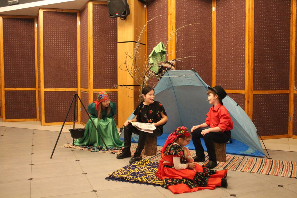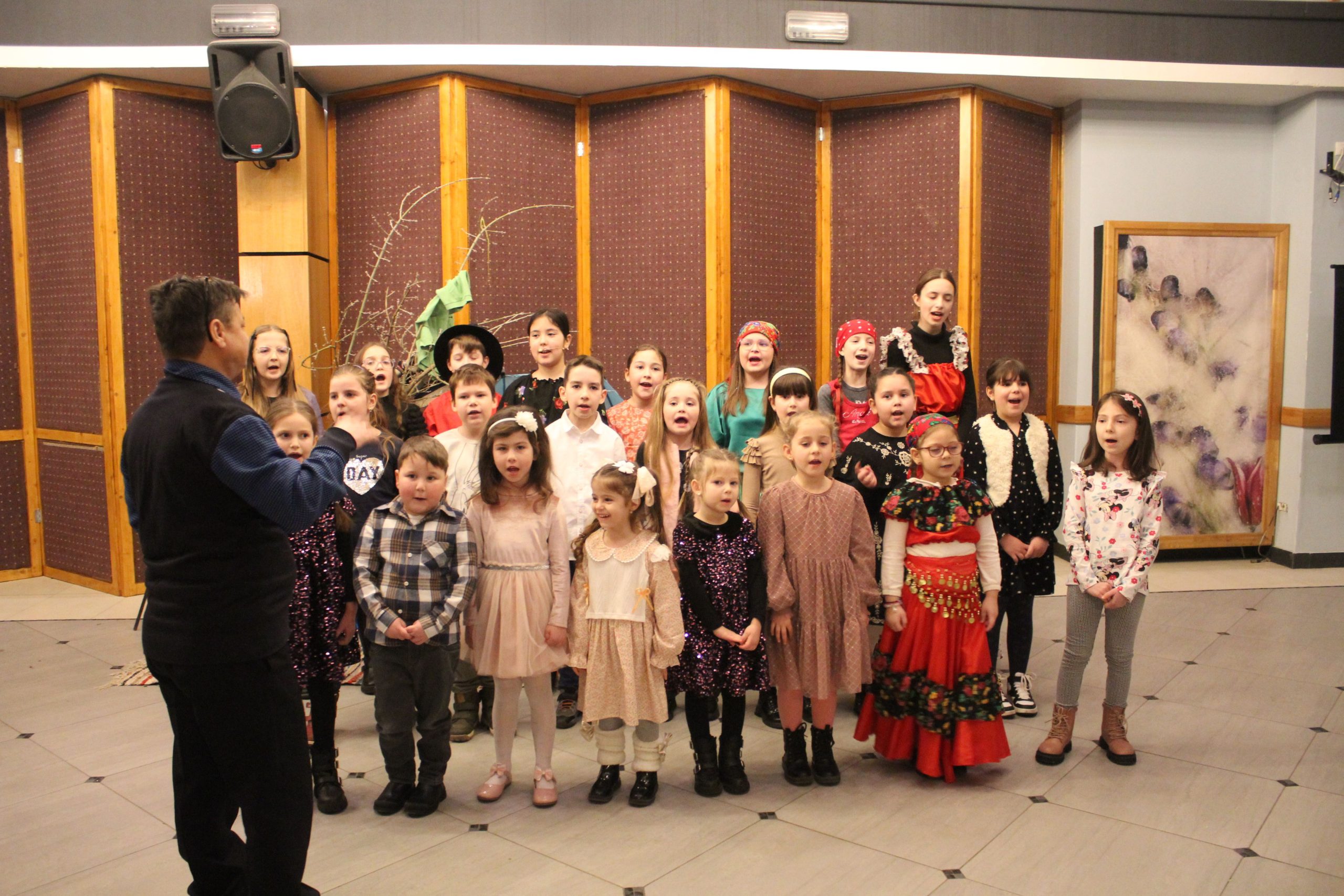 Micuții artiști de la Grupul Vocal ”Melody” au interpretat o scenetă sugestivă a acestui eveniment, iar la final, copiii au interpretat două cântece, Inimă de țigancă și Trec țiganii trec.
