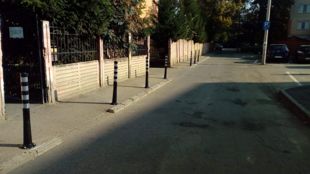 Pentru a evita blocarea străzii Aviatorilor și implicit a trotuarului pe care circulă copiii în drum spre/dinspre unitățile școlare din zonă, am decis montarea unor stâlpi de delimitare.