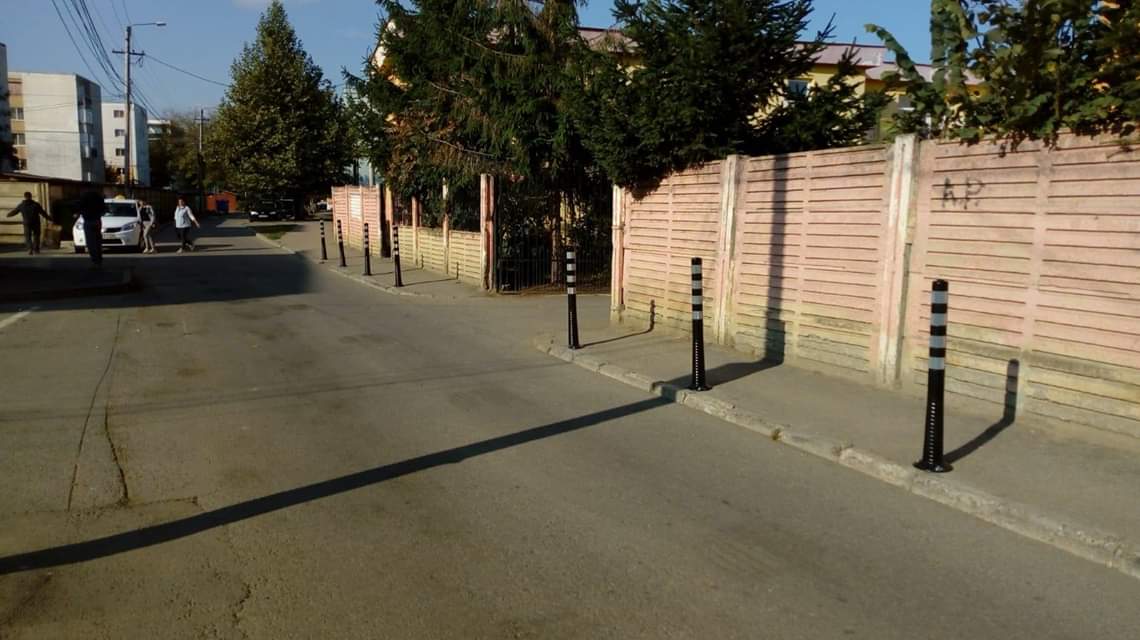 Pentru a evita blocarea străzii Aviatorilor și implicit a trotuarului pe care circulă copiii în drum spre/dinspre unitățile școlare din zonă, am decis montarea unor stâlpi de delimitare.