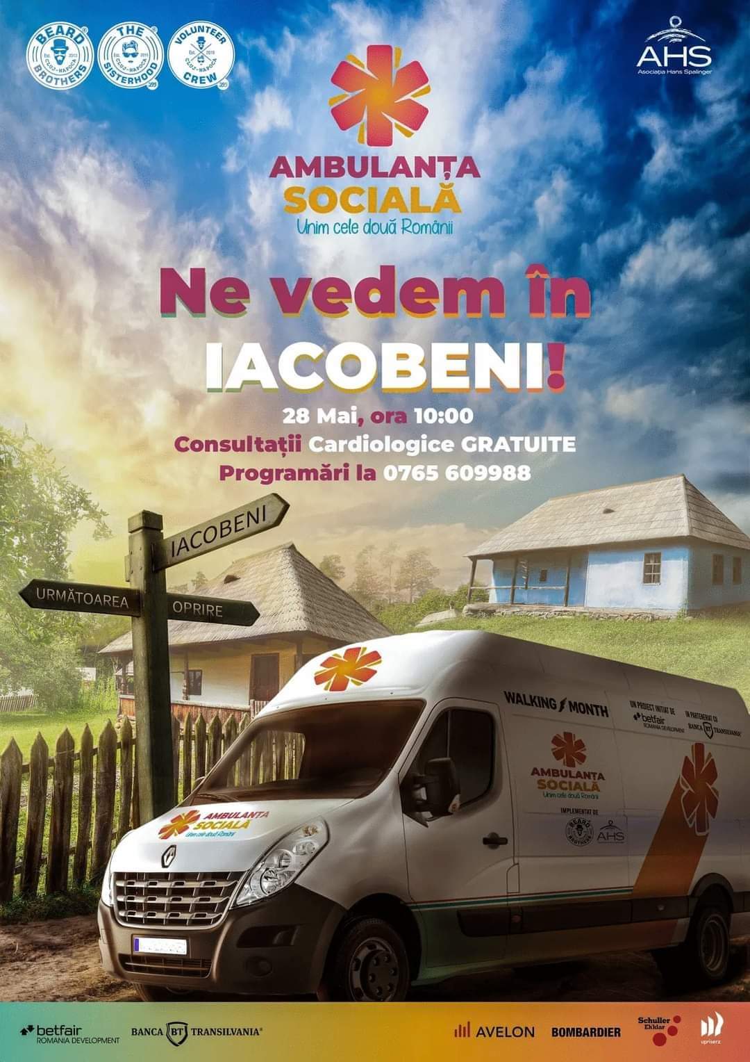 Sâmbătă, 28 mai, de la ora 10:00, Ambulanța Socială vine la Iacobeni.