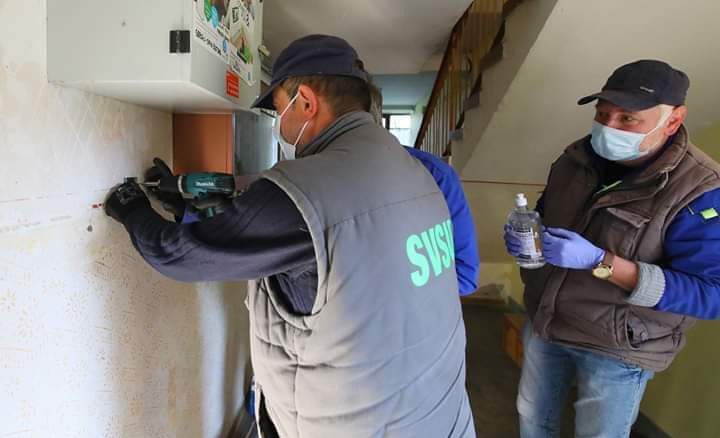 Primăria Municipiului Turda a început să distribuie și să monteze dispenserele cu dezinfectanți în scările de bloc.