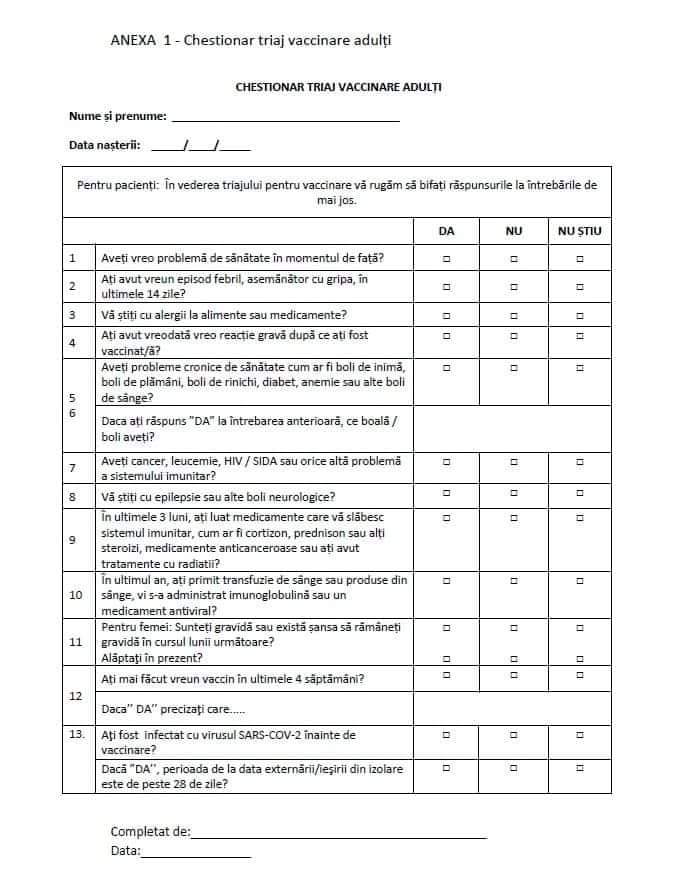 Actualitate Documentele necesare pentru vaccinare ziarul21.ro 19 ianuarie 2021, 16:07 Share Tweet Share Share Email Comments Aceste doua documente sunt necesare pentru vaccinare după programarea prealabila, le puteți descarca de aici și sa mergeți cu ele gata completate, câștigând timp prețios. Related Items:Documentele necesare pentru vaccinare Share Tweet Share Share Email Click to comment Leave a Reply Anulează răspunsulComentariile trebuie să respecte regulile de utilizare.Adresa ta de email nu va fi publicată. Câmpurile necesare sunt marcate cu *Comentariu * Nume * Email * Δ Acest site folosește Akismet pentru a reduce spamul. Află cum sunt procesate datele comentariilor tale.