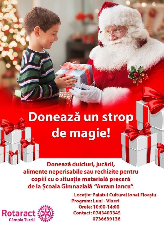 Sub genericul “Donează un strop de magie”, Clubul Rotaract Câmpia Turzii sare în ajutorul copiilor cu o situație materială precară din cadrul Școlii “Avram Iancu” Câmpia Turzii.
