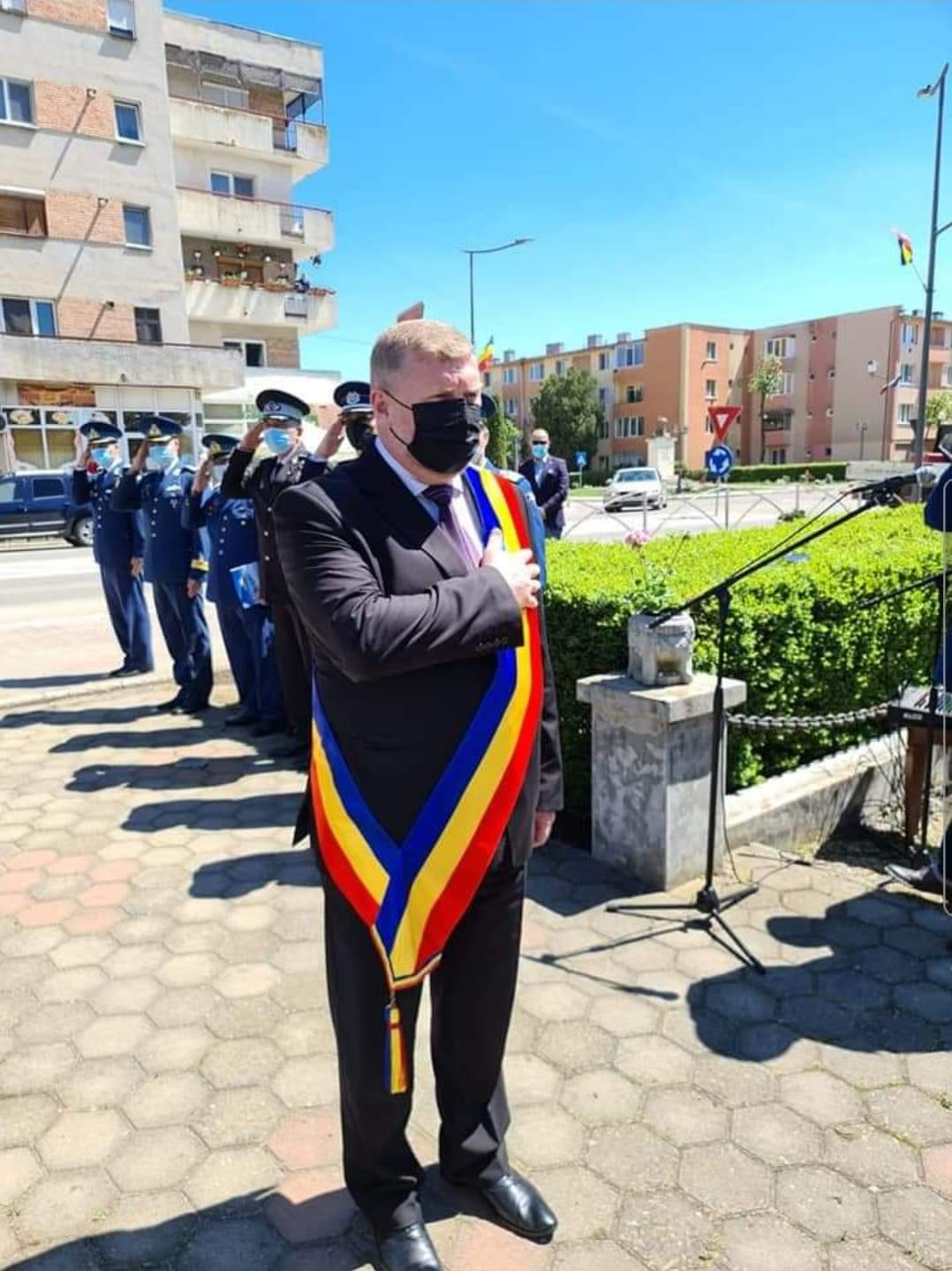 Ziua de astăzi este cu atât mai specială, cu cât este prima manifestație publică, în aer liber, după aproape 5 luni. Datorită eforturilor depuse de coordonatorii campaniilor de vaccinare anti-COVID-19 și a responsabilității de care cetățenii noștri au dat dovadă, putem astăzi să fim aici – pentru a omagia cele 3 sărbători ale zilei. Privind retrospectiv în istorie, putem observa o continuitate cronologică, deoarece independența de stat a României a asigurat prezența țării noastre între forțele beligerante din cel de-al doilea Război Mondial și, odată cu 1 ianuarie 2007, accesul națiunii române în marea familie europeană. Apartenența la UE nu doar că a generat investiții în dezvoltare, prin prisma finanțărilor obținute, însă pandemia de COVID-19 ne-a arătat importanța capitală de a fi parte din Uniunea Europeană. Printr-un efort comun și o negociere comună, țara noastră beneficiază de toate tipurile de vaccin avizate, în prezent de Autoritatea Europeană a Medicamentului, lucru decisiv în oprirea acestei pandemii.